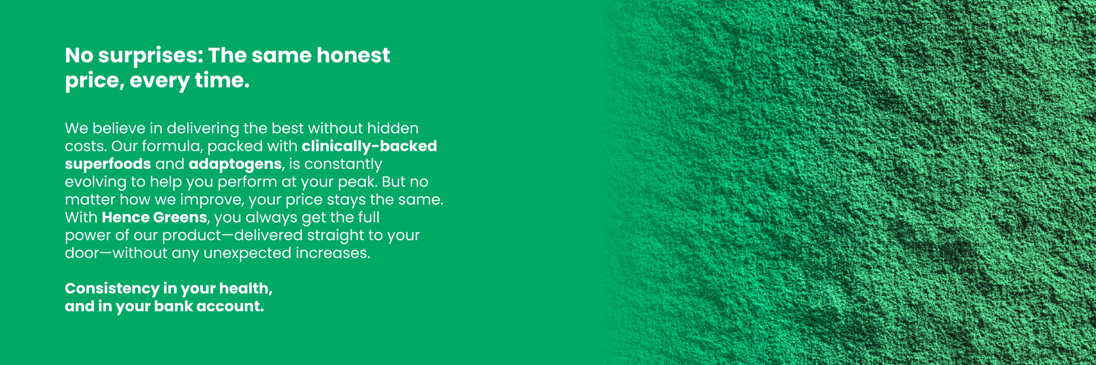 Complete transparency - Full serving sizes, listed on the pack and in your Greens.